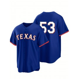 Men'S #53 Blue Baseball Jersey, Classic Retro Letter Embroidery Design Breathable Short Sleeve T-Shirt For Training Competition