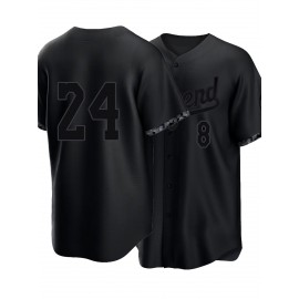 Men'S All Black # 8-24 Baseball Shirt, Classic Letter Embroidery Design, Button Style Short Sleeved Breathable Shirt, for Training And Competition Use