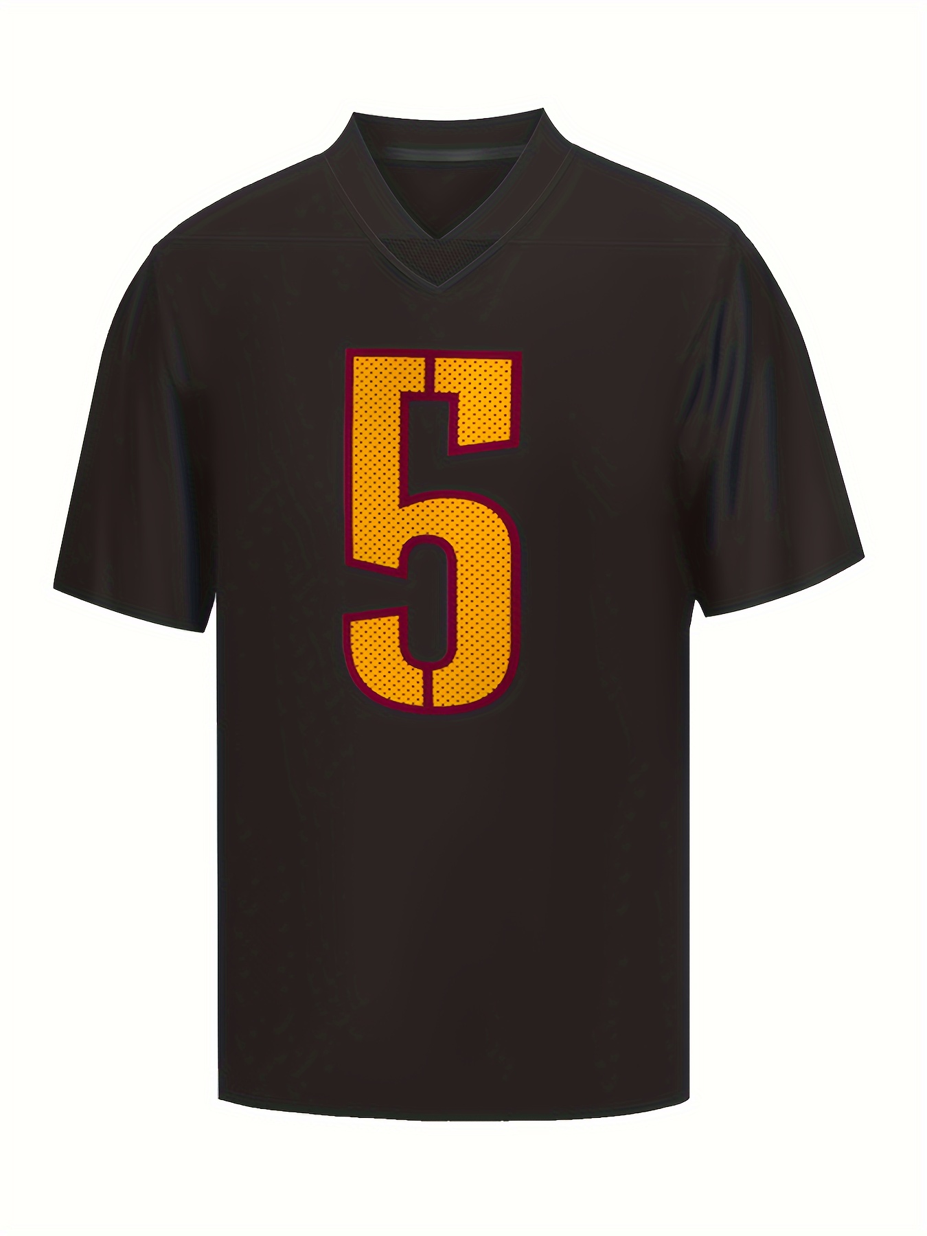 Men'S Black # 5 Breathable Rugby Shirt, Sports V-Neck Short Sleeved Training Shirt, Classic Embroidered American Rugby Shirt
