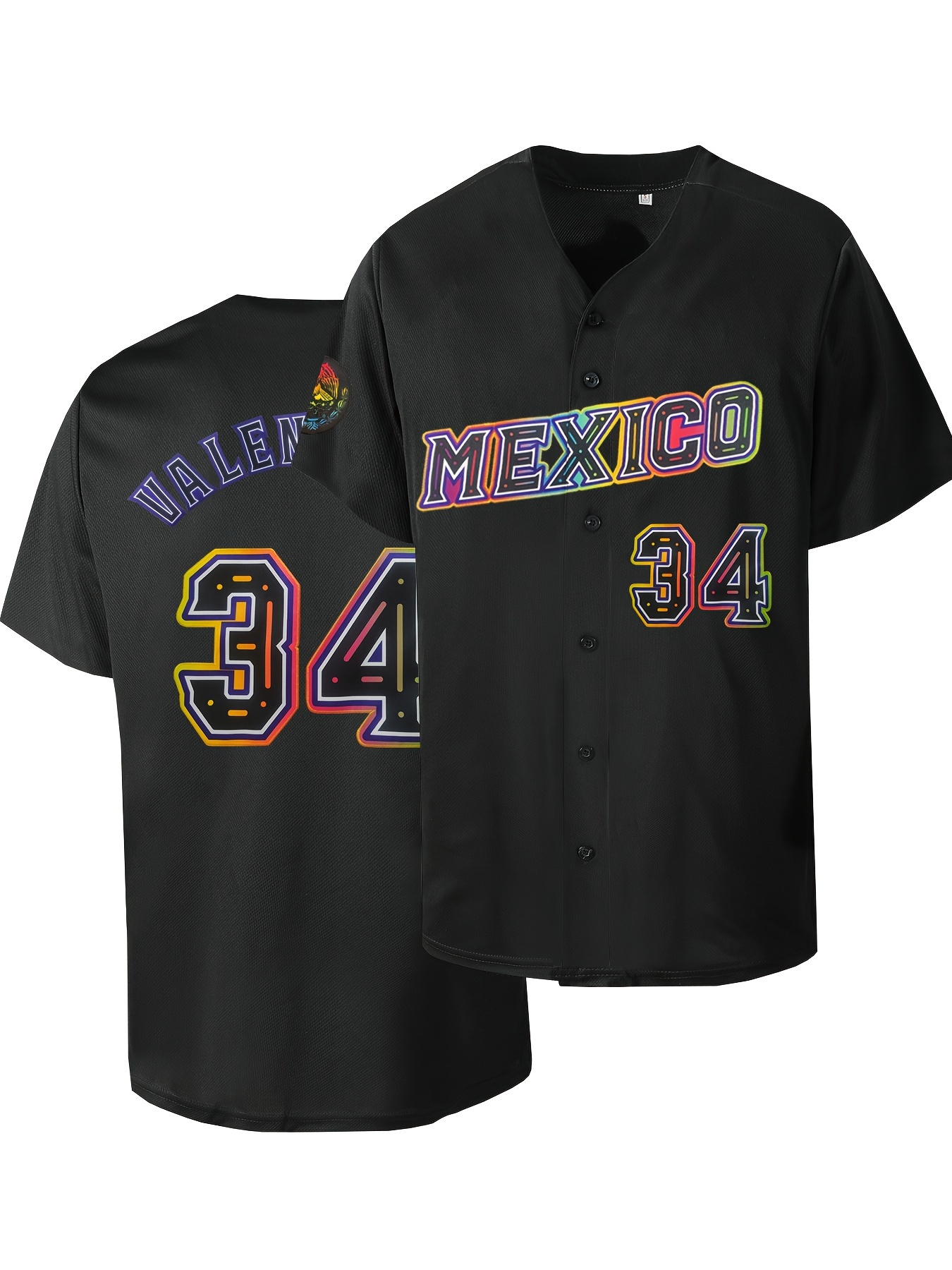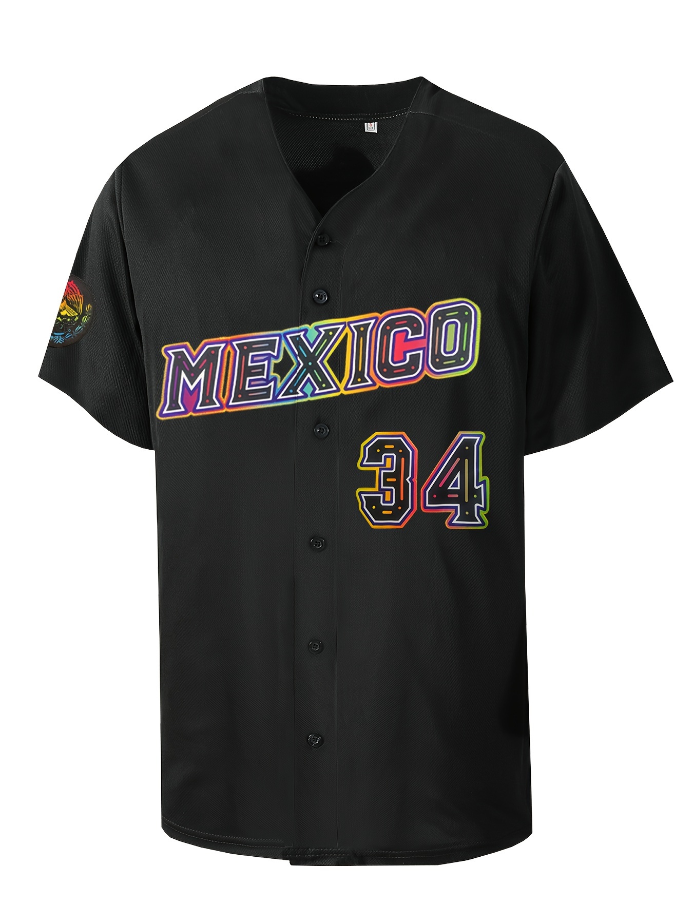 Men's Mexico #34 Black Baseball Jersey - Retro Letter & Number Design, Breathable V-Neck Button-Up Shirt, Loose Fit Short Sleeve for Training, Competition, Casual & Holiday Wear, Quality Embroidery Detail, Best for Christmas, Perfect for Thanksgiving