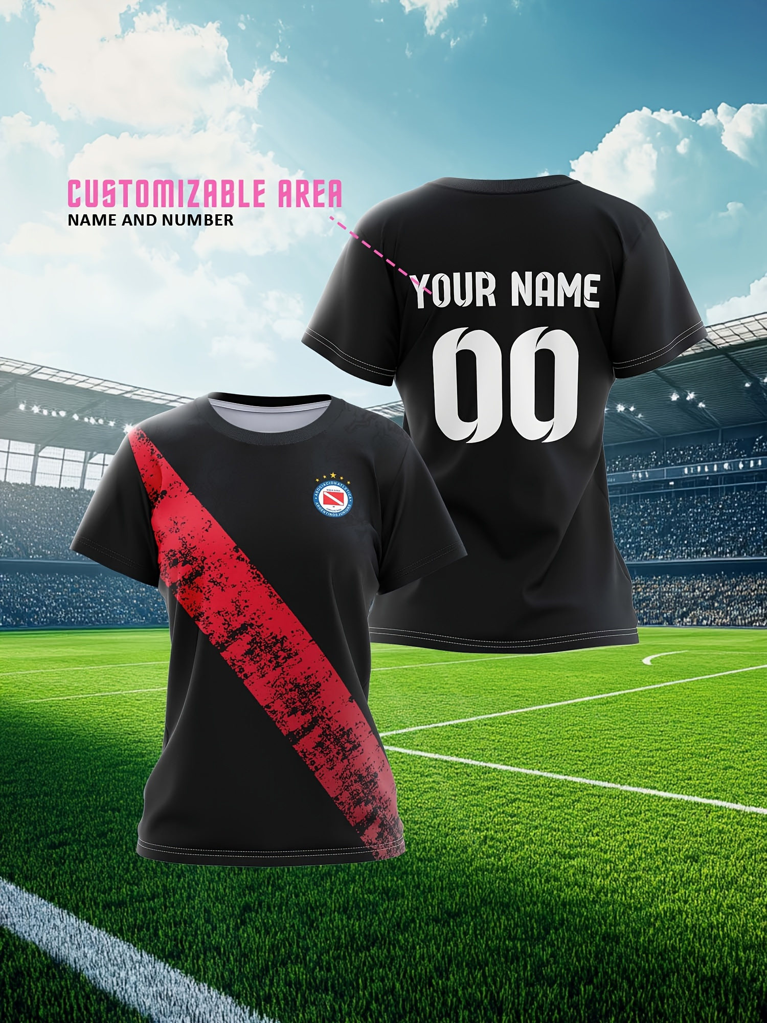 Women's Custom Soccer Jersey Personalized Name & Number - Two-Tone Red/White Athletic top - Non-Stretch Fabric for Soccer, Baseball, Gym - Custom Sports Apparel Gift for Female Players, Outdoor Sports Attire, Vibrant Stripe Design, Durable Sportswear